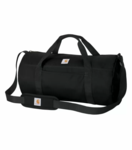 This versatile, water-resistant duffel can hold all your jobsite or travel must-haves. It comes folded inside a zippered utility pouch that can be reused to hold additional tools and gear. 500D polyester. Durable water repellent (DWR). PFAS free water repellent fabric treatment. Large zippered opening into main compartment. Dual webbing haul handles with comfort grip. Exterior slash pocket. Adjustable shoulder strap with pad and Carhartt® label. Carhartt® label sewn on front. Includes a separate utility zippered pouch with Carhartt® label sewn on front. Can be used for duffel storage or as a pouch for small items. Dimensions: 11"h x 21.5"w x 11"l Volume: Approx. 2,441 cu. in./40L.